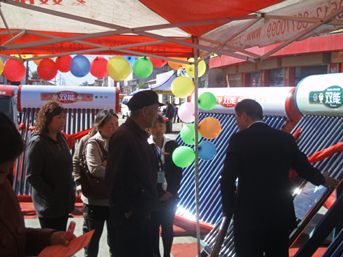 2012年9月16日至10月5日,雙能太陽能在山西市場連續做了幾場展銷活動,借著成功中標節能產品惠民工程的喜訊,雙能真正踐行讓惠于民。雙能工作人員現場為老百姓介紹購買雙能太陽能可享受國家節能補貼還有大禮相送,向老百姓展示雙能過硬的產品質量。展銷活動目前已累計銷售236臺,取得了良好的成效,同時也擴大了雙能在山西市場的知名度及美譽度。