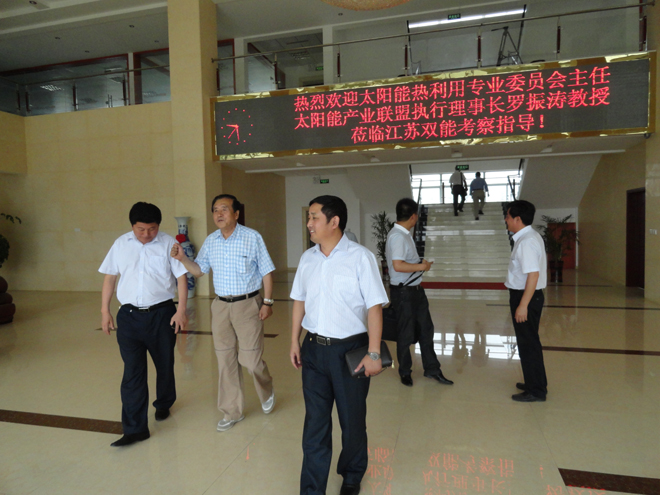 6月24日上午,中國農(nóng)村能源行業(yè)協(xié)會太陽能熱利用專業(yè)委員會主任、太陽能產(chǎn)業(yè)聯(lián)盟執(zhí)行理事長羅振濤教授與《中國太陽能產(chǎn)業(yè)資訊》、《中國太陽能工程》雜志副總編陳講運蒞臨江蘇雙能太陽能有限公司考察指導。羅主任此行旨在了解雙能公司的具體發(fā)展情況,結(jié)合行業(yè)的發(fā)展政策及趨勢,給出雙能公司相應的解決辦法,指導雙能公司穩(wěn)健地發(fā)展。
